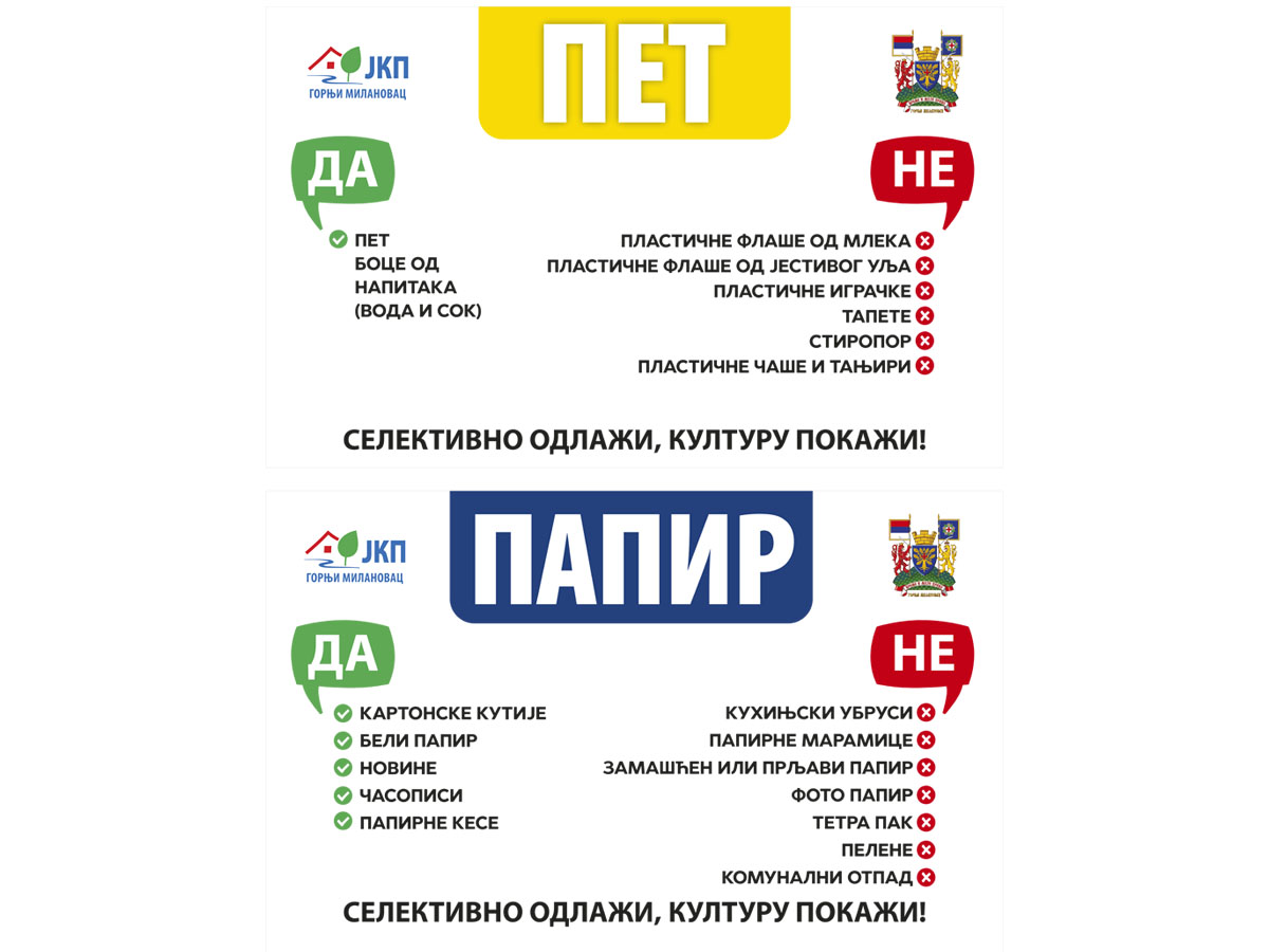 U svakodnevici sve je više plastične ambalaže koja se jednokratno koristi. Prema nekim istraživanjima u Srbiji se godišnje utroši 53.000 tona PET ambalaže. Da se ona razgradi potrebno je hiljadu godina, pa neadekvatno i nekontrolisano odlaganje može dovesti do ozbiljnih ekoloških posledica. Reciklažom samo jedne plastične boce sačuva se onoliko energije koliko jedna sijalica potroši za nekoliko sati neprekidnog rada. Prosečna četvoročlana porodica baci oko 40 kilograma plastike godišnje. Zato je stalno ukazivanje na probleme, ali i na prave načine selekcije i odlaganja otpada od izuzetnog značaja. U JKP ''Gornji Milanovac ''često osmišljavaju nove načine za edukaciju sugrađana organizovanjem raznih akcija, podelom informativnih flajera, angažovanjem na društvenim mrežama.